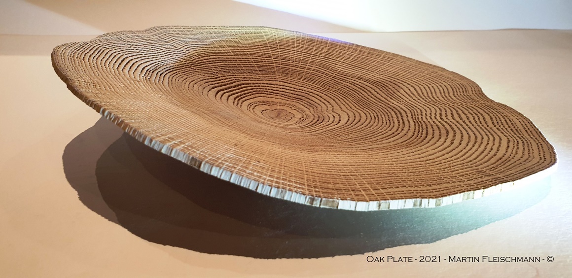 Von Pascal Oudet inspiriert habe ich diesen Teller aus Eiche gedrechselt und sandgestrahlt. Durch das Sandstrahlen sind die Jahresringe sowie die Holzstruktur der 70 Jahre alten Eiche wunderbar zu erkennen.
