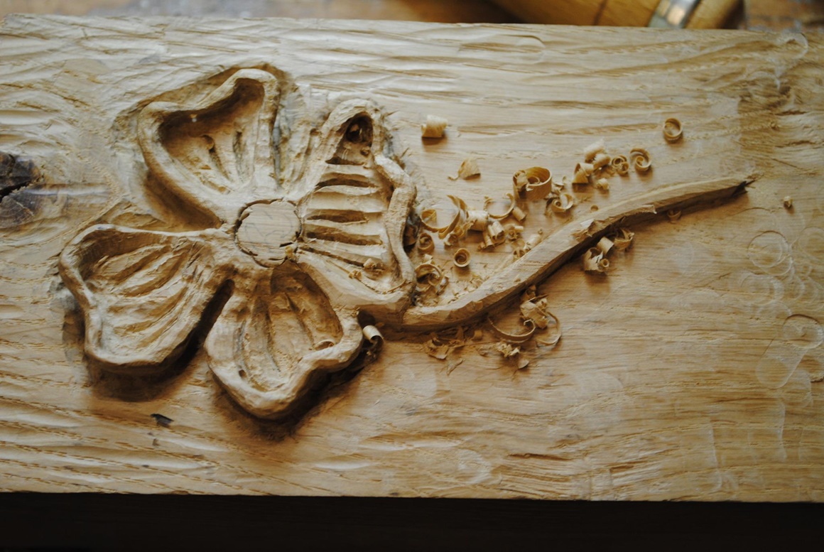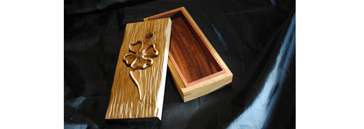 Das Stück Eichenholz, welches ich zum Schnitzen verwendet habe, ist aus meinem Fundus und über hundert Jahre alt, an der Maserung von Deckel und Korpus kann man sehr gut erkennen, dass es ursprünglich mal ein Stück war.