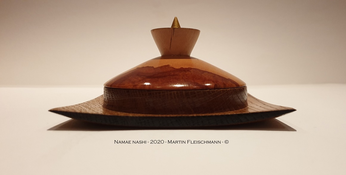 Die kleine Schale ist aus 300 Jahre alter Eiche gedrechselt, der Deckel ist aus einem Apfelbaum angefertigt.